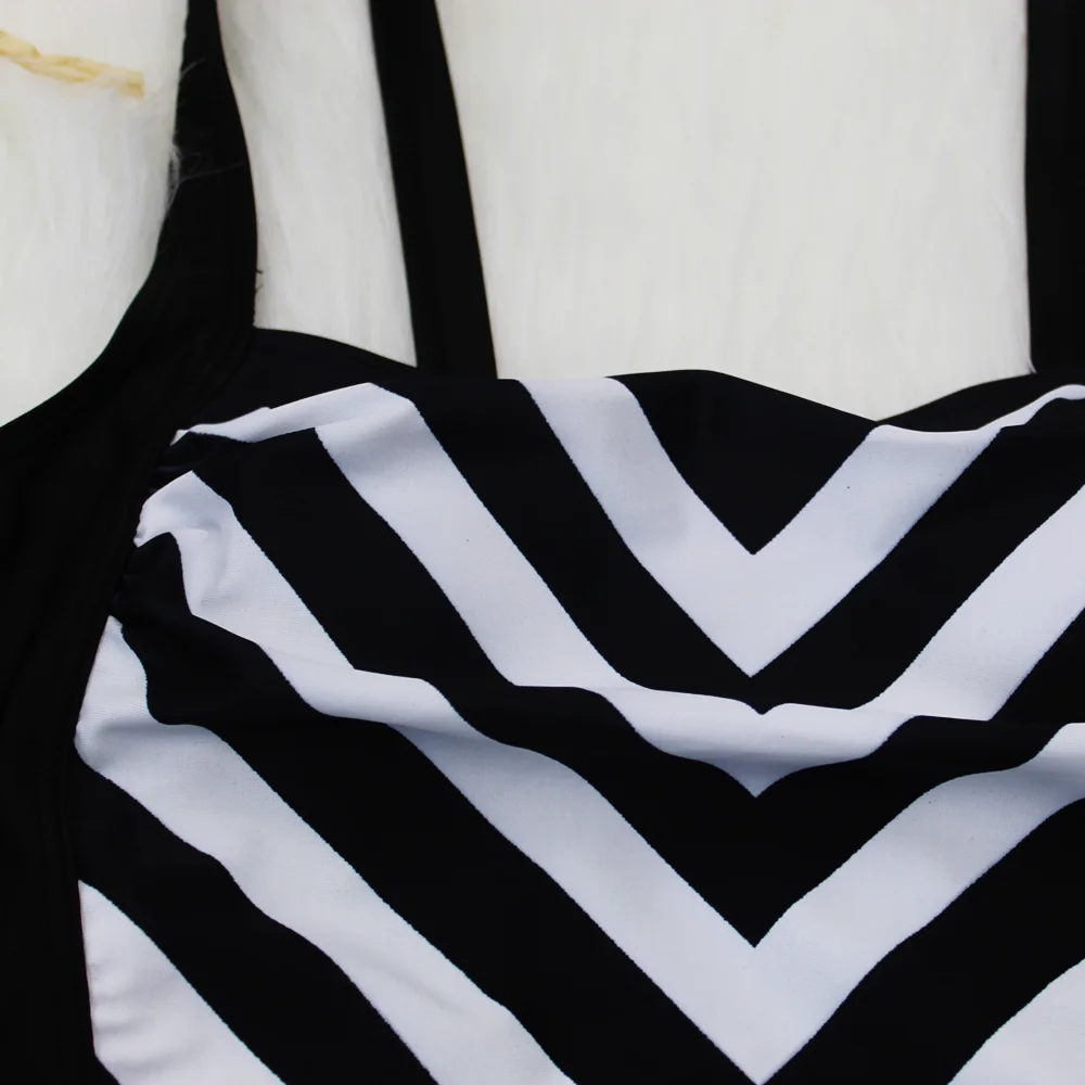 Женский слитный купальник-бикини, цвет черный, в полоску