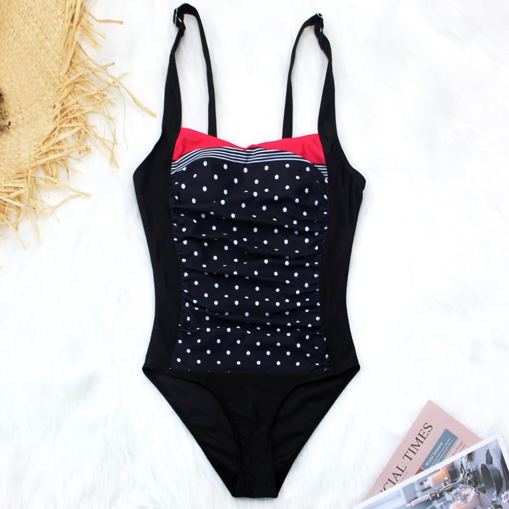 Женский слитный купальник в горошек, винтажный купальный костюм, Ев...