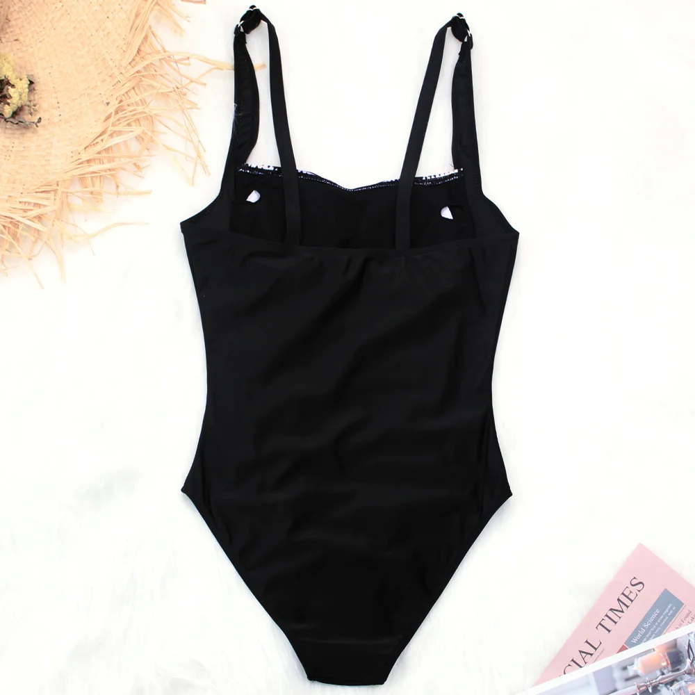 Слитный черный купальник SEASHY, винтажный женский купальник с обор...