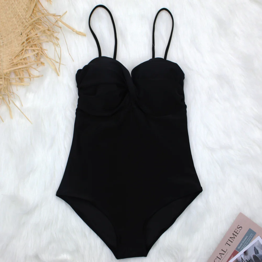 Сексуальный слитный купальник CUPNICE, Однотонный женский купальник...