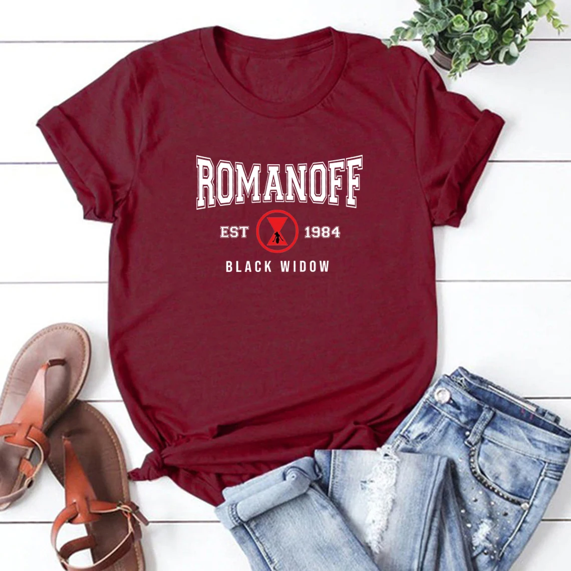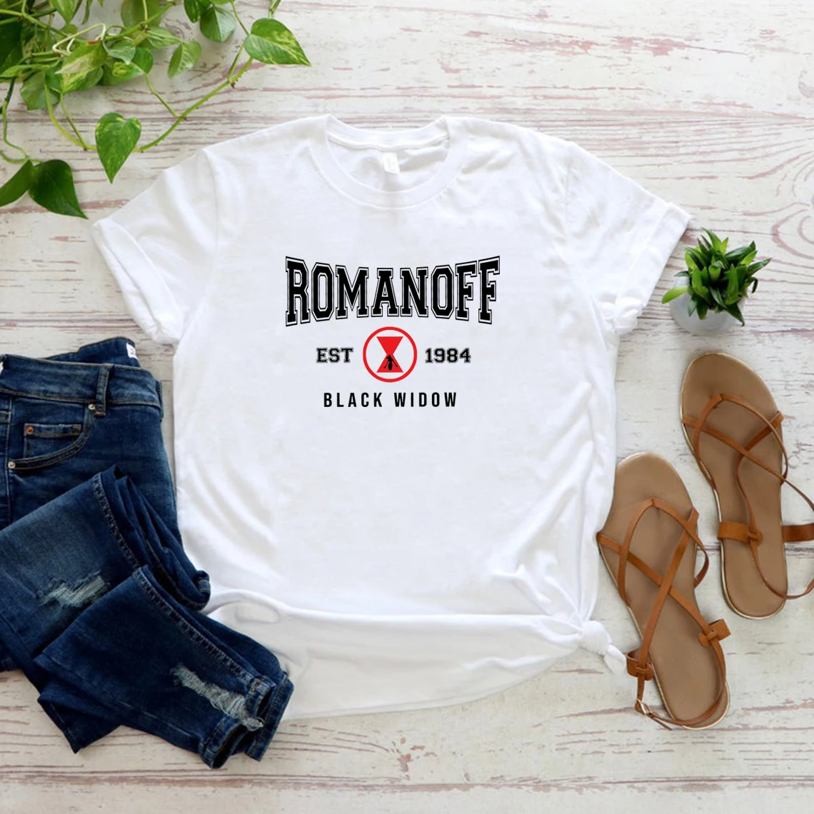 Romanoff 1984 футболка, Черная Вдова, 2021 рубашка, Наташа, Romanoff, женская футболка, модные летние топы, графические футболки