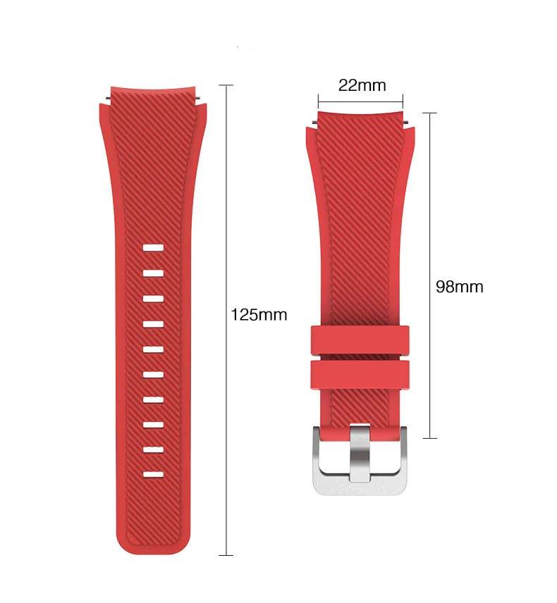 Подходит для: для Samsung Gear S3Ширина ремешка: 22 мДлина ремешка: подходит для запястья 145-200 мм,Материал ремешка: силиконЧасы: ПряжкаПосылка включает в себя:1 ремешок для часов с адаптерами (часы в комплект не входят)