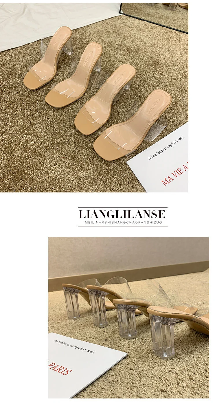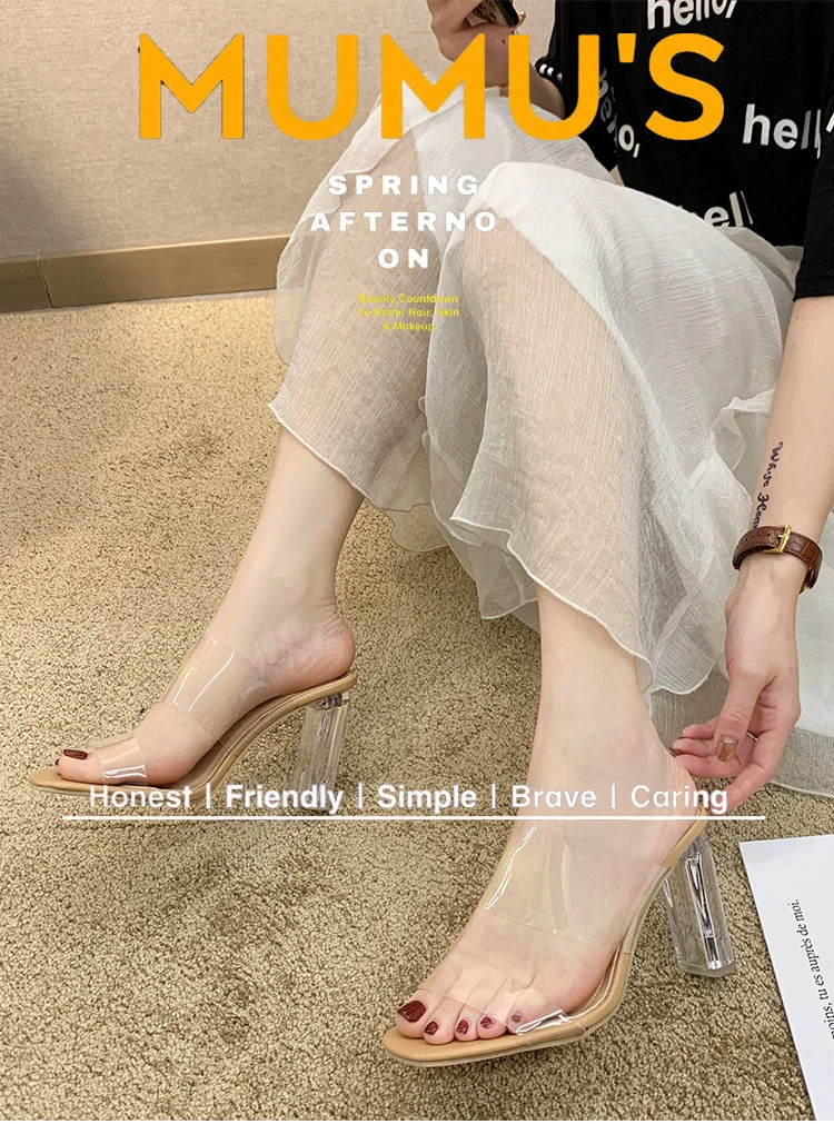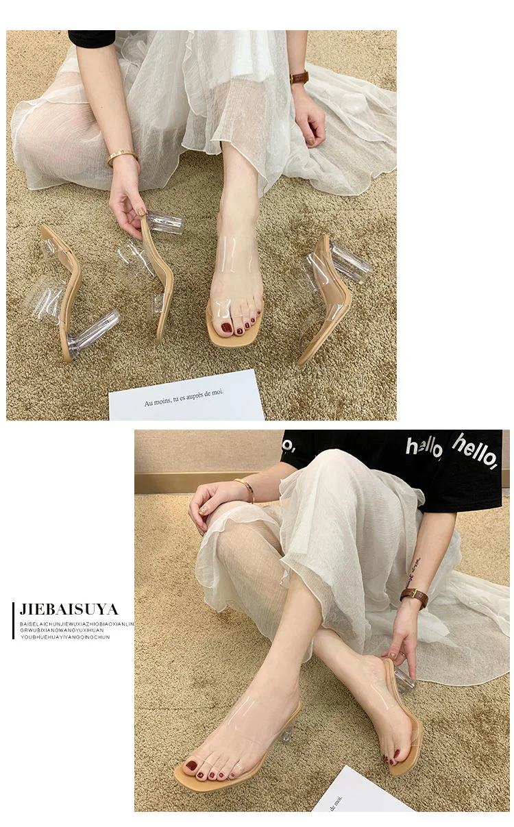 2020 горячие прозрачные каблуки женские сандалии-шлепанцы летние ту...