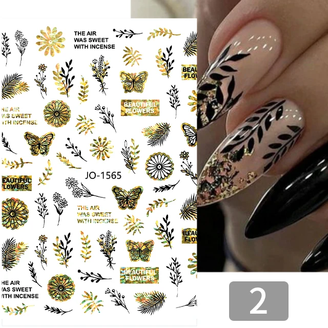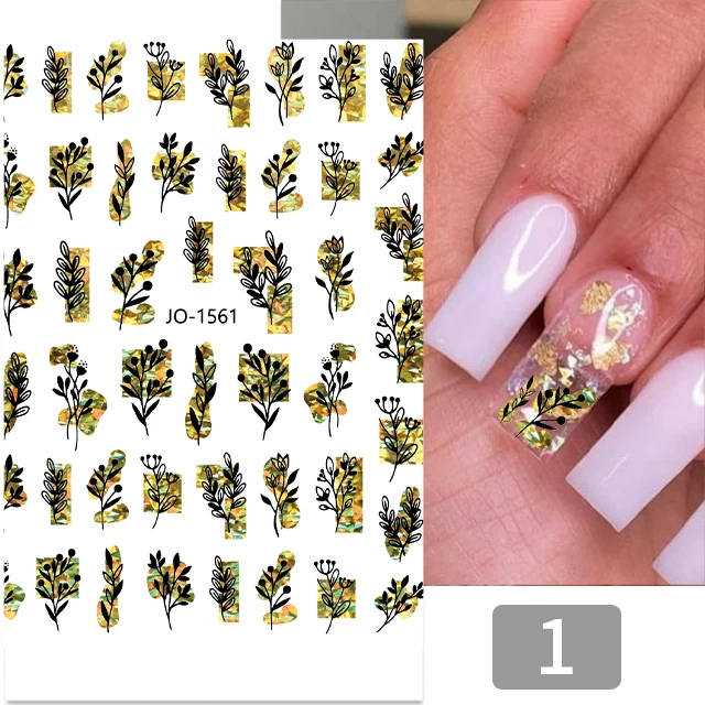 1 лист 3D наклеек для ногтей Harunouta, цветок, золотые листья, вет...
