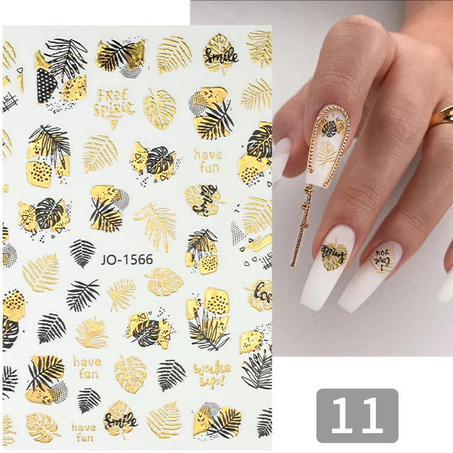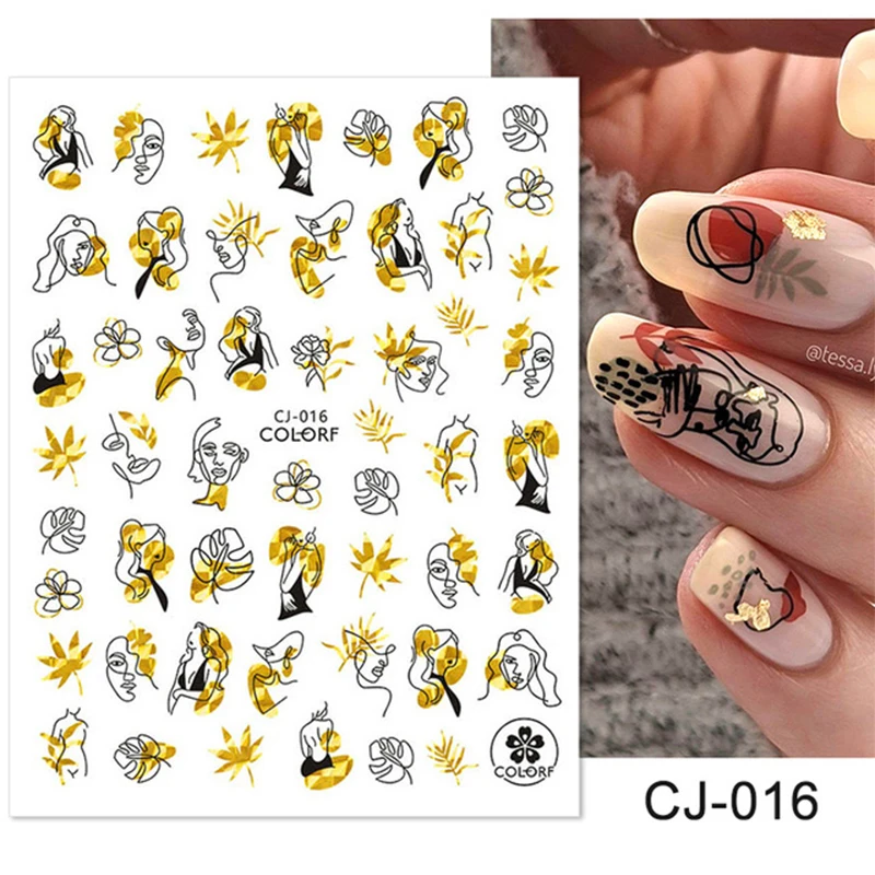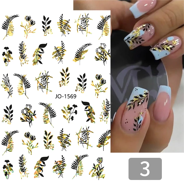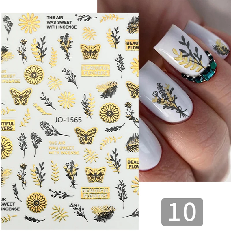 3D наклейка s для фотографий золотистая белая наклейка полосатая линия листья цветок самоклеящаяся скользящая аппликация тренд дизайна ногтей