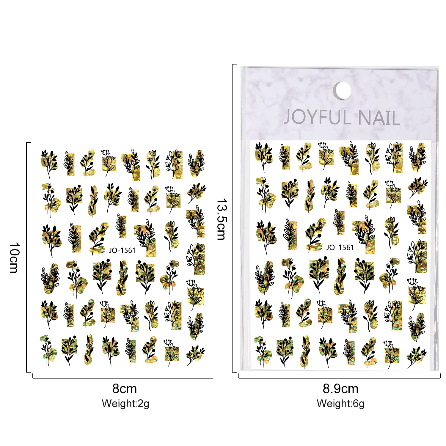3D-Наклейки для ногтей, Переводные, золотые, кленовые листья, черны...