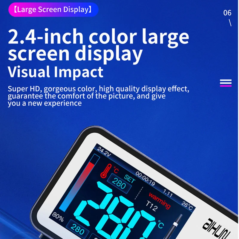 4. 2,4 дюймовый цветной дисплей, 100-480 ℃ регулируемая температура, с режимом ожидания в реальном времени.