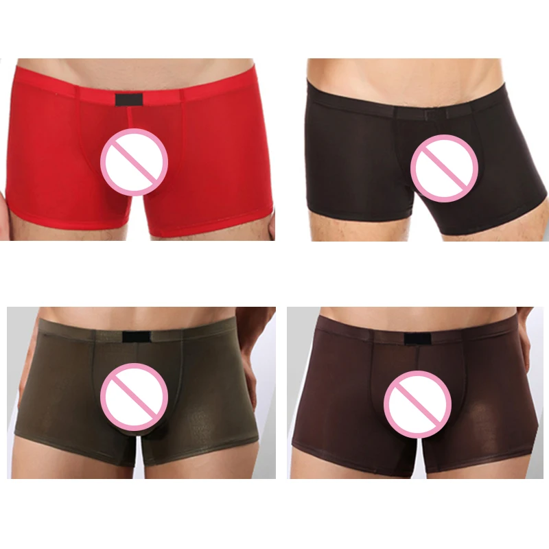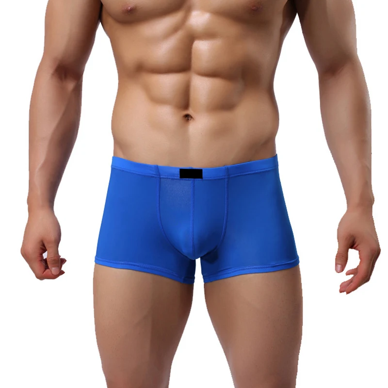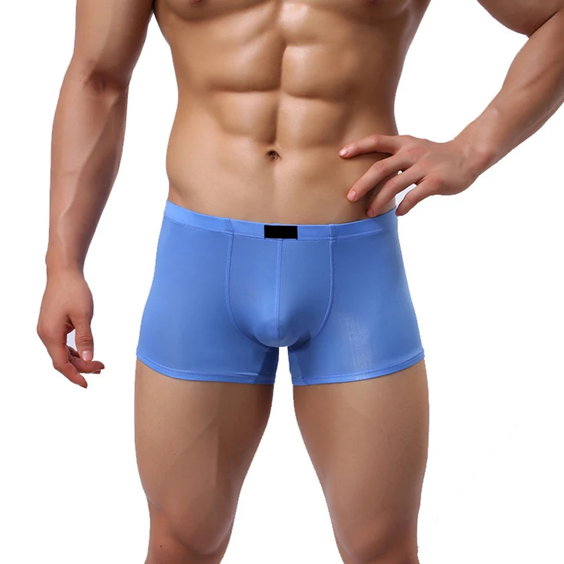 Прозрачные мужские боксеры, шелковистые прозрачные трусы, сексуальное мужское нижнее белье, трусы с низкой талией, эротическое белье, удобное нижнее белье