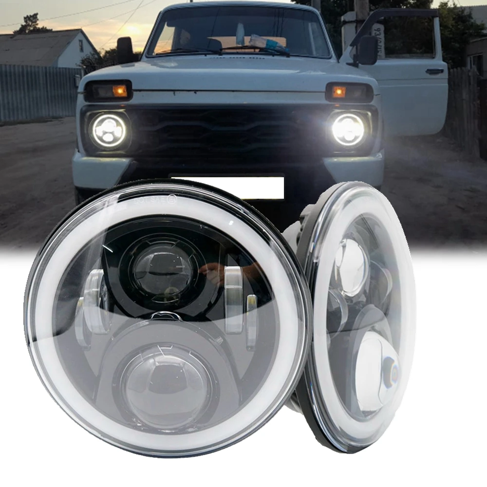 Передняя фара в сборе, 7-дюймовый круглый мотоциклетный светодиодный налобный фонарь, Угловые глаза, 12 В, 24 В, сигнал поворота для Jeep Lada Niva Urban 2121 внедорожник 4x4