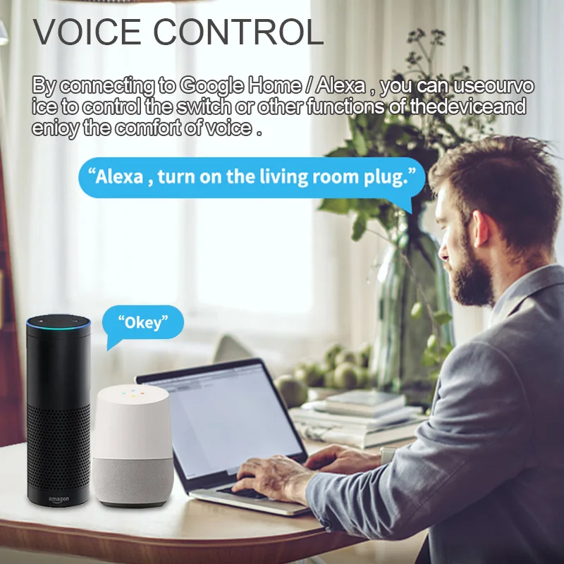 Умные Вилки можно использовать с устройствами, поддерживаемыми Alexa и Google Assistant для легкого голосового управления.