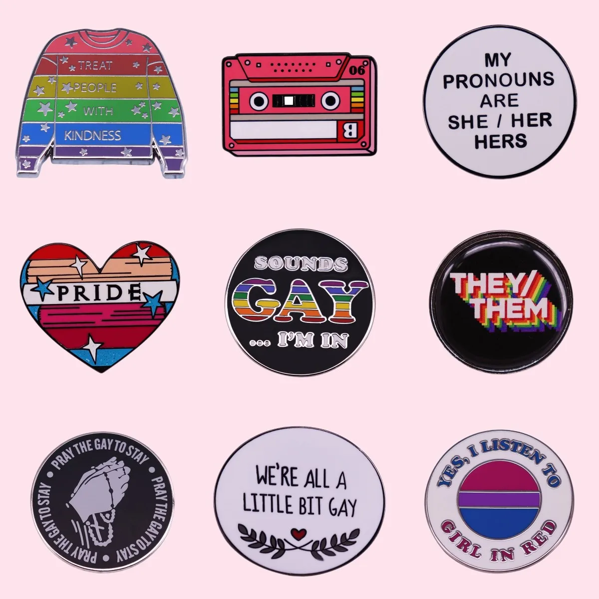 Превосходное качество, блестящие радужные эмалевые металлические значки, брошь на лацкан, куртки, джинсы