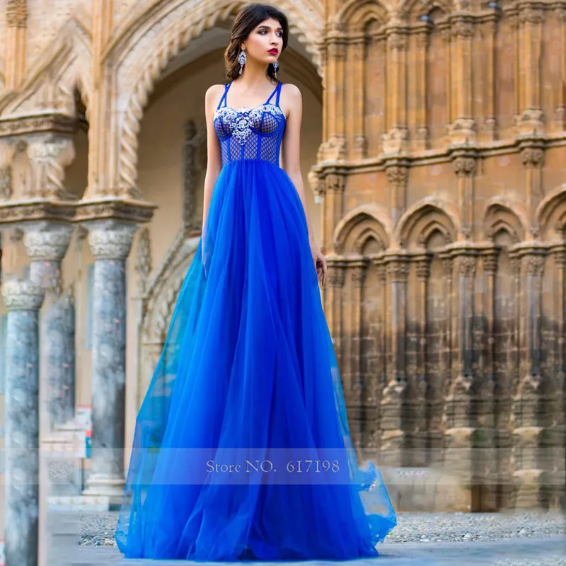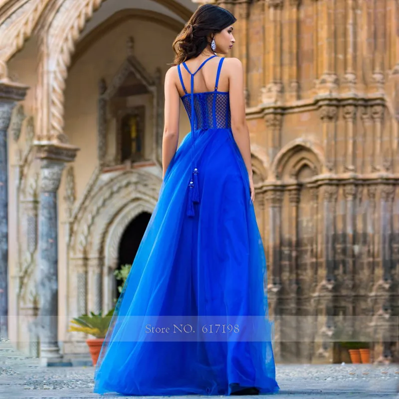 Женское вечернее платье, прозрачное ТРАПЕЦИЕВИДНОЕ платье из тюля, с аппликацией из бисера, Королевского синего цвета, для выпускного вечера, 2022