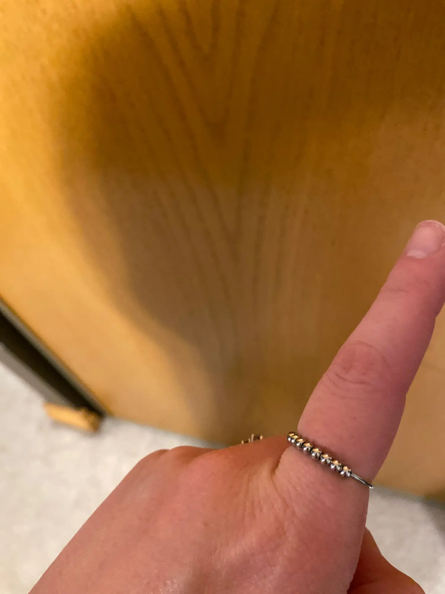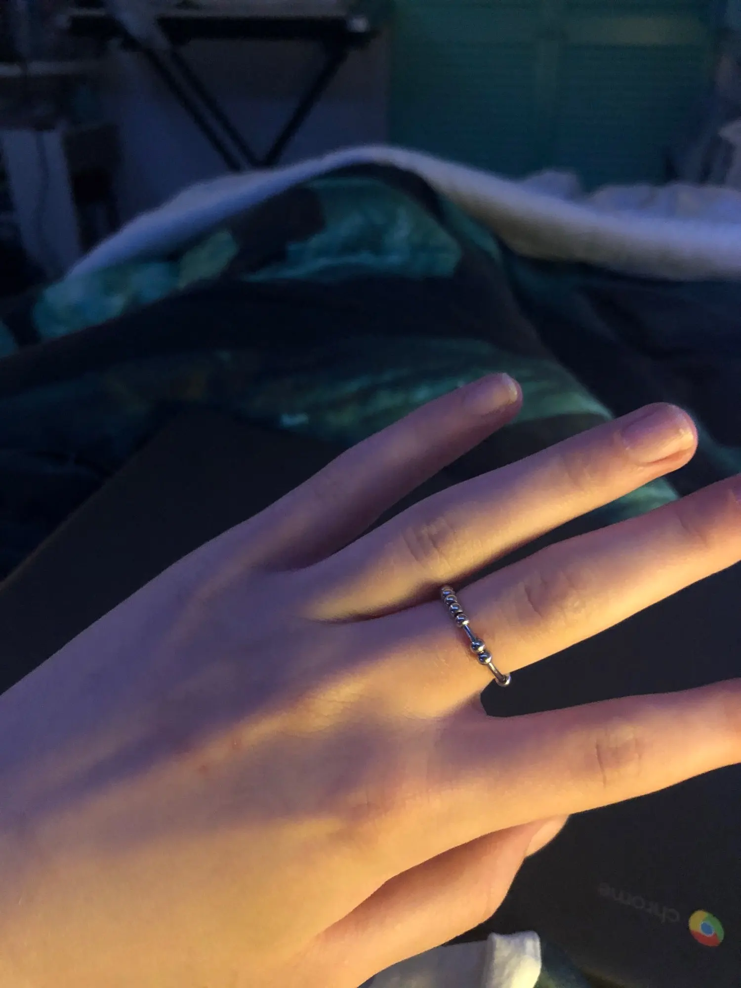 Очень нравится этот тревоги кольцо! Именно то, что я ищу. Я составляет, как правило, играя с моим обручальное кольцо в тех случаях, когда я был обеспокоить, но сейчас у меня есть это! Шары двигаться только тогда, когда я перемещать их, которые я нервничала!