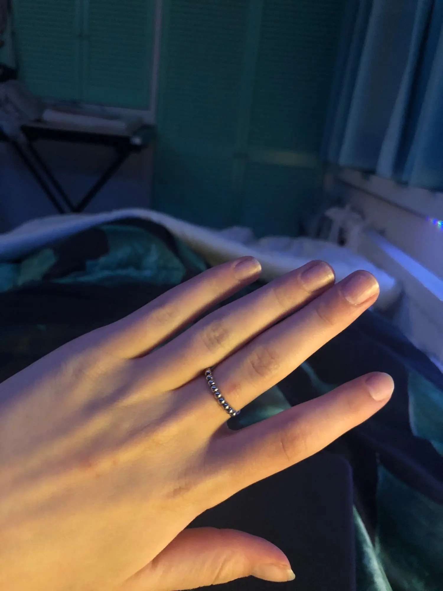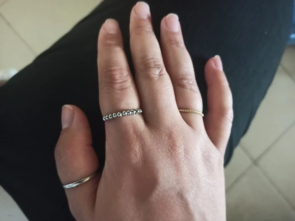Кольцо доставлено ко мне быстро и легко. Для информации: только 9 из 10 бусин являются подвижными (вероятно, 10 бусин покрывает точку соединения). Я доволен. 5 звезд.