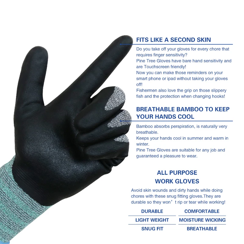 ✅Дышащий нейлон для поддержания прохлады рук-нейлон поглощает пот, естественно, очень дышащий. Сохраняет ваши руки прохладными летом и теплыми зимой. Перчатки подходят для любой работы и гарантированно приятно носить.✅Подходит как вторая кожа-снимаете ли вы перчатки для каждой работы, которая требует чувствительности пальцев? Перчатки обладают чувствительностью к голой руке и удобны для сенсорного экрана! Теперь вы можете сделать эти напоминания на вашем смартфоне или ipad, не снимая перчатки! Рыбаки также любят сцепление с этими скользкими рыбами и защиту при смене крючков!