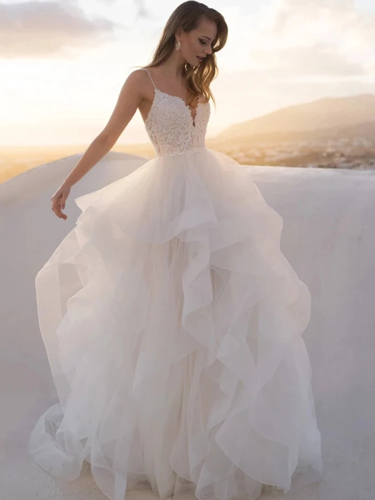 Женское длинное свадебное платье, Пляжное платье из тюля с открытым...