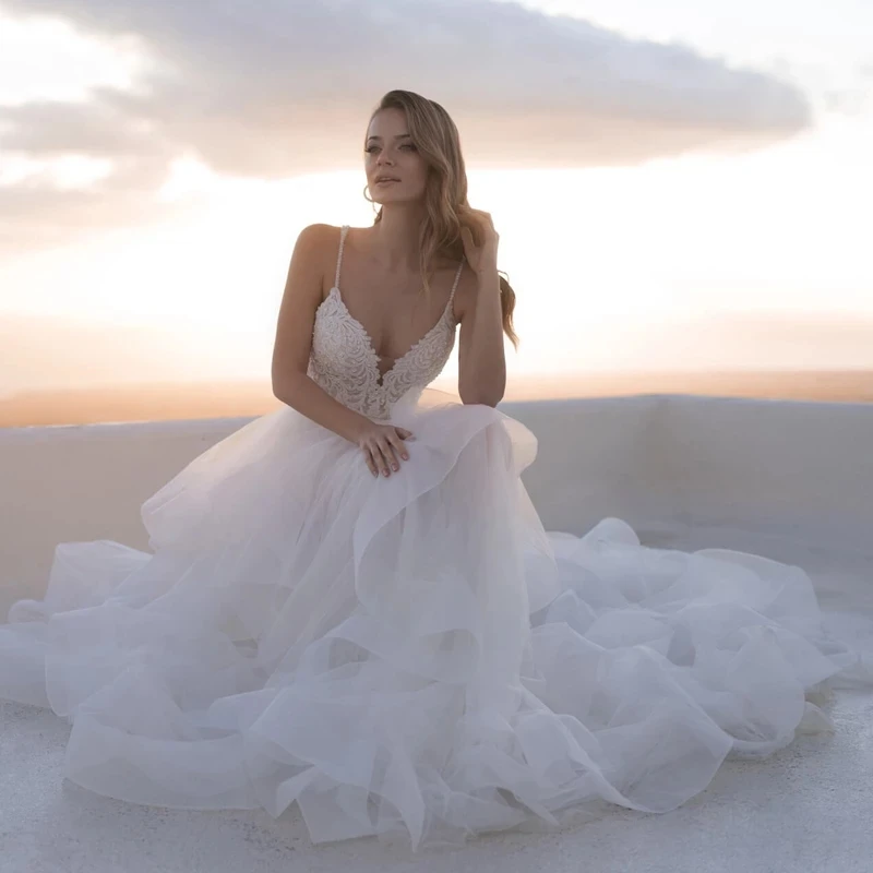 Женское свадебное платье, Белое мягкое платье принцессы с V-образным вырезом, а-силуэт, со шлейфом, открытой спиной, Новое поступление 2022