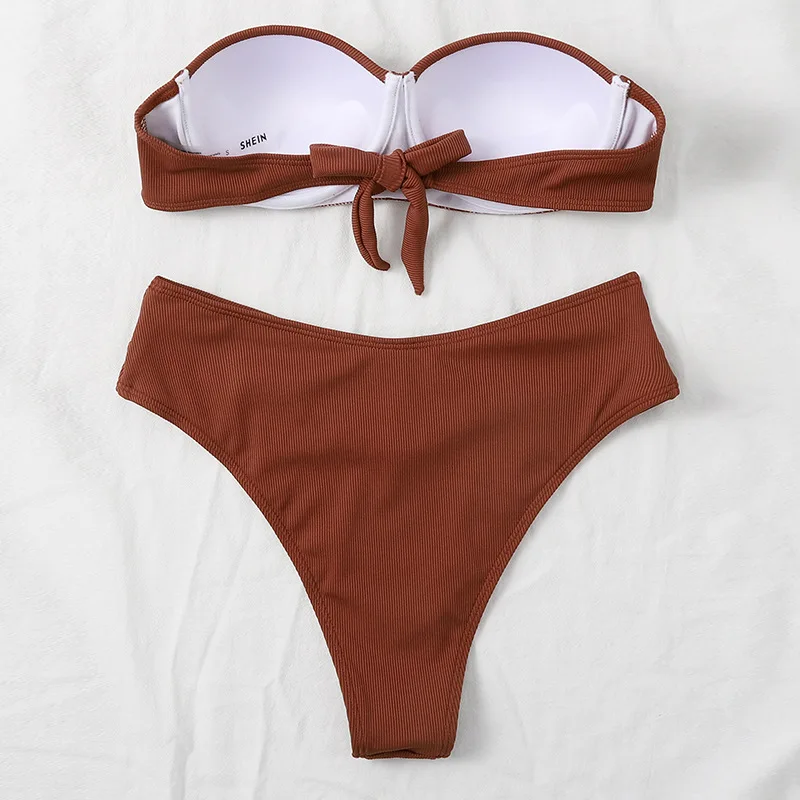 Соблазнительные женские бикини в рубчик, купальник с пуш-ап, женский купальник с высокой талией, однотонная пляжная одежда 2022, купальные костюмы, бразильское бикини