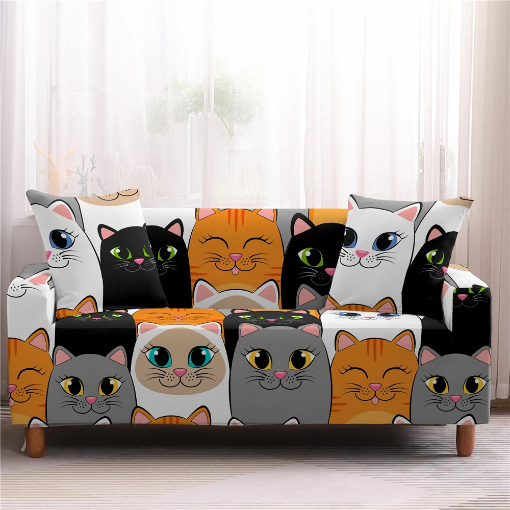 Чехол для дивана с мультяшным котом для гостиной, эластичные Чехлы для дивана с собакой, чехол для дивана L-образной формы