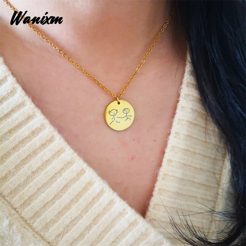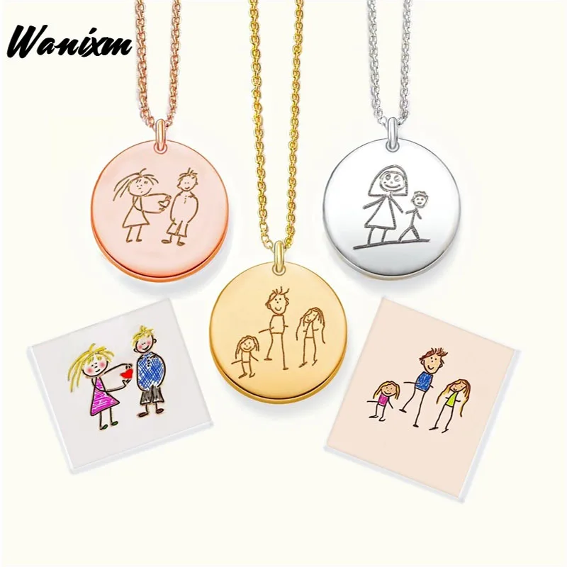 Wanixm под заказ с Золотой Гравировкой фото детской индивидуальной фотографии из нержавеющей стали Детские Сувенирные Семейные ювелирные изделия