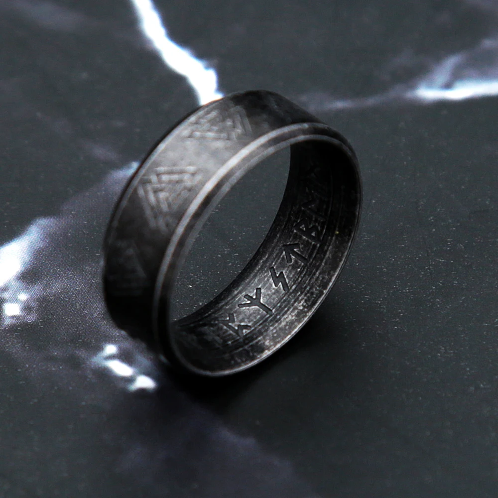 Название: панк классическое черное кольцо Valknut для мужчин винтажное скандинавский Викинг кольцо Руны из нержавеющей стали Байкер амулет ювелирные изделия подарки Оптовая продажа