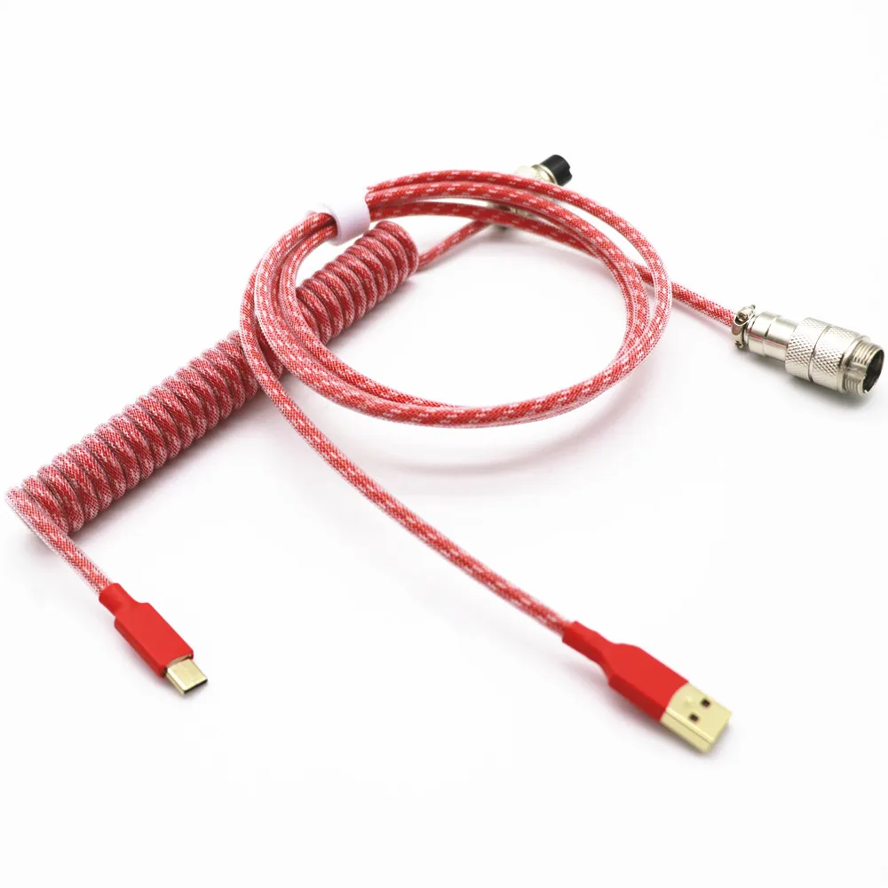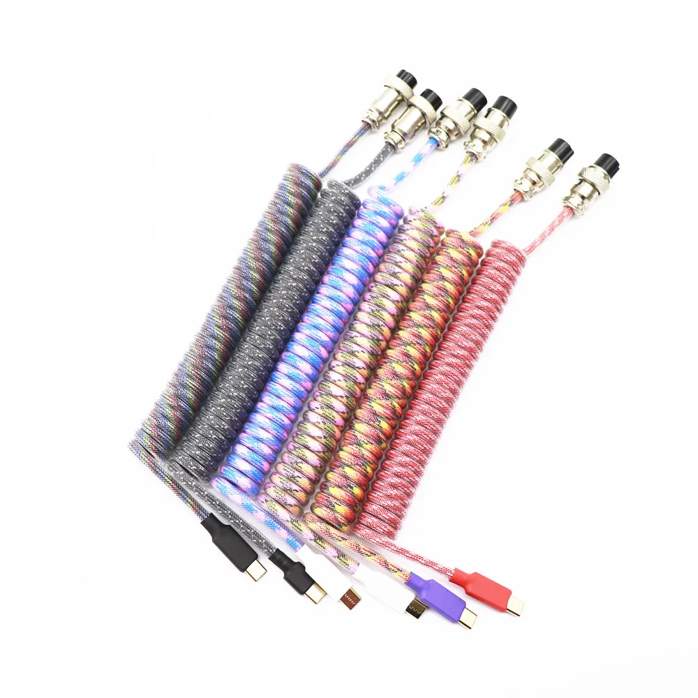 2. Цветной Авиатор гальванизирован, цвет немного тускнеет. Не размещайте заказ, если он не принимается.Пользовательский толстый спиральный OD 23 мм спиральная клавиатура USB Type C спиральный кабель Paracord PET L форма мини микро цветной GX16 кабель передачи данных 2,0