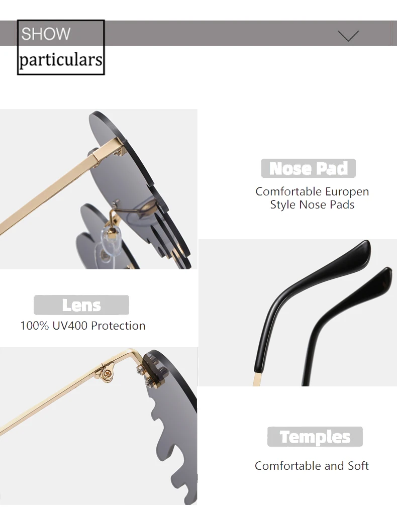 Солнечные очки без оправы UV400 женские, смешные солнцезащитные акс...