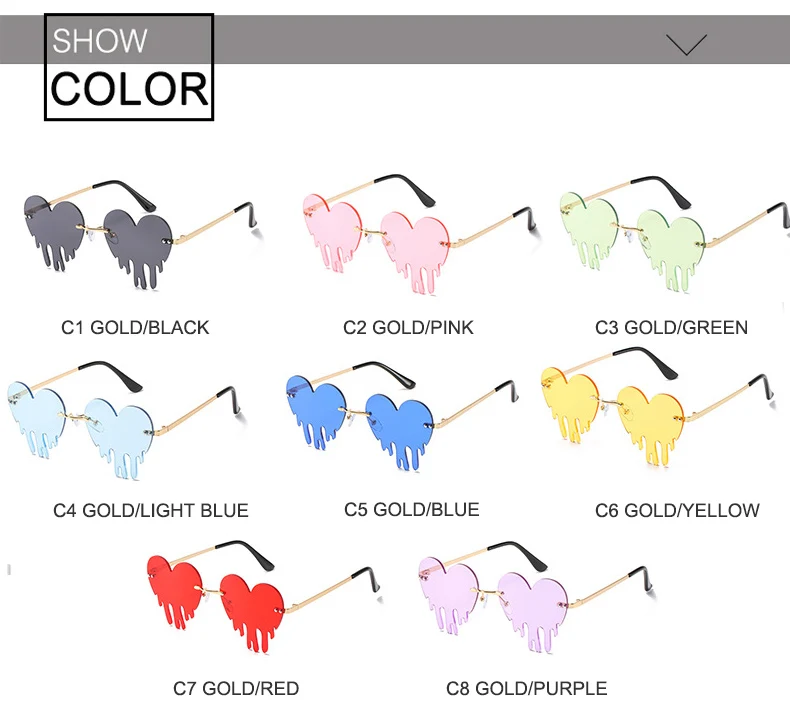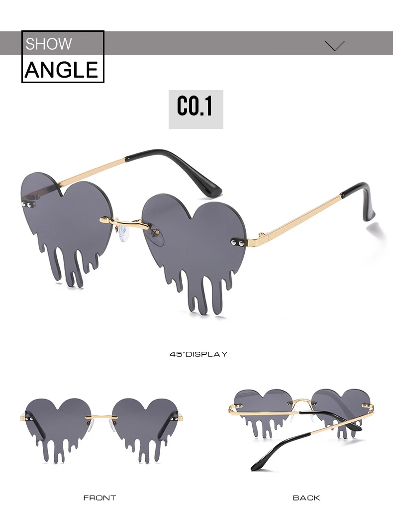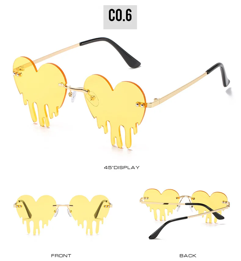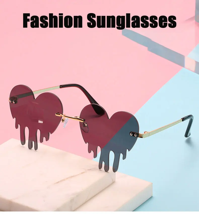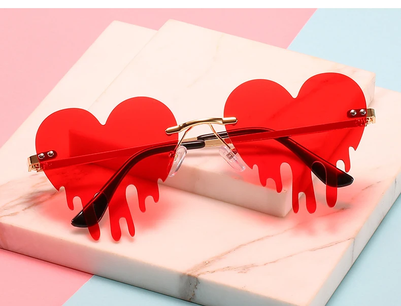Солнцезащитные очки унисекс, без оправы, цветные, в форме сердца
