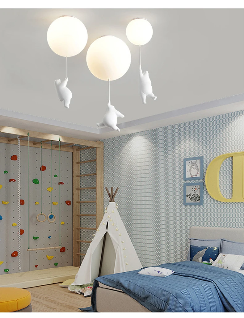 Лампы в скандинавском стиле с медведем для детской комнаты, потолоч...