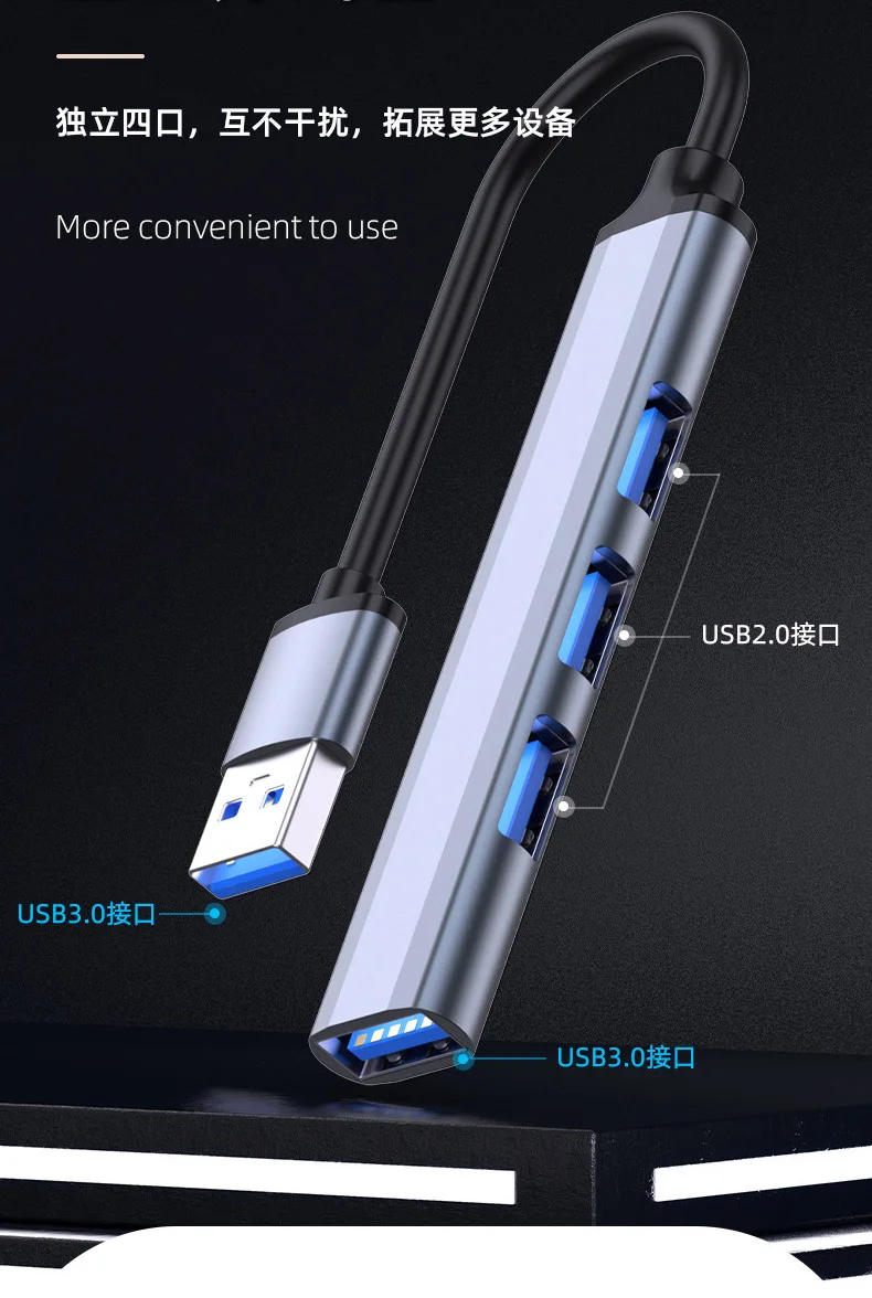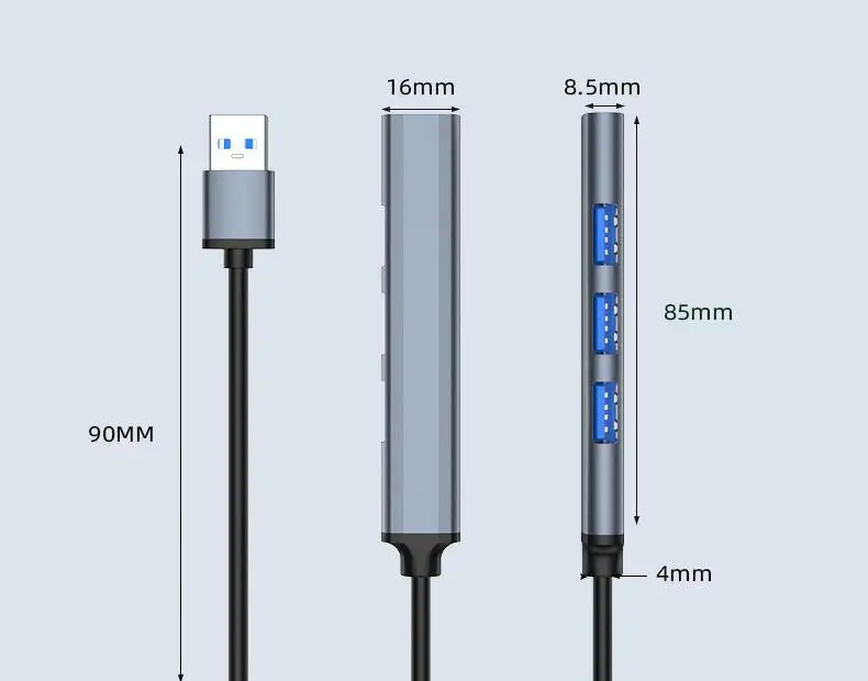 USB-разветвитель 3,0, 4 порта USB 2,0, Ультратонкий алюминиевый разветвитель для передачи данных