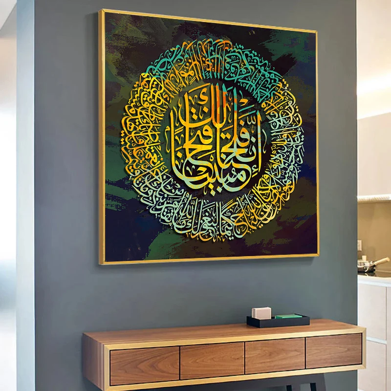 Исламская Картина на холсте, настенное искусство, арабская каллиграфия, религиозное Писание, Коран, печатные плакаты, картины, мусульманское украшение для дома