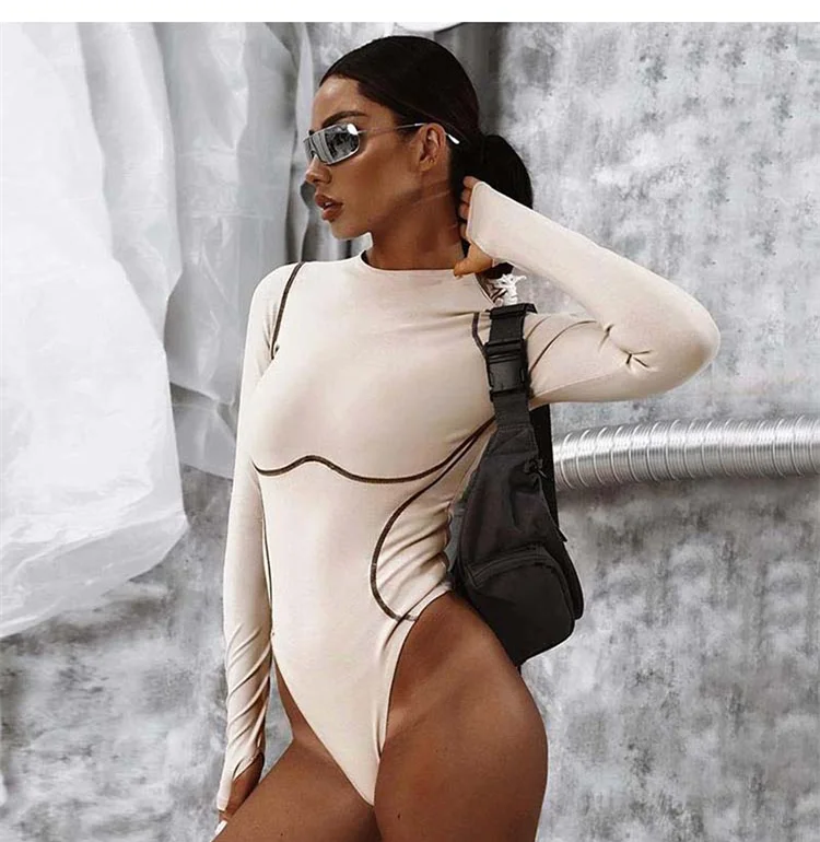Соблазнительное Женское боди с длинным рукавом, в полоску, в стиле пэчворк, однотонное облегающее Женское боди для клувечерние, Женский соблазнительный наряд, Женское боди