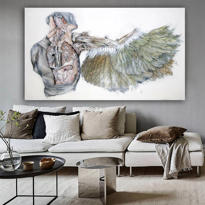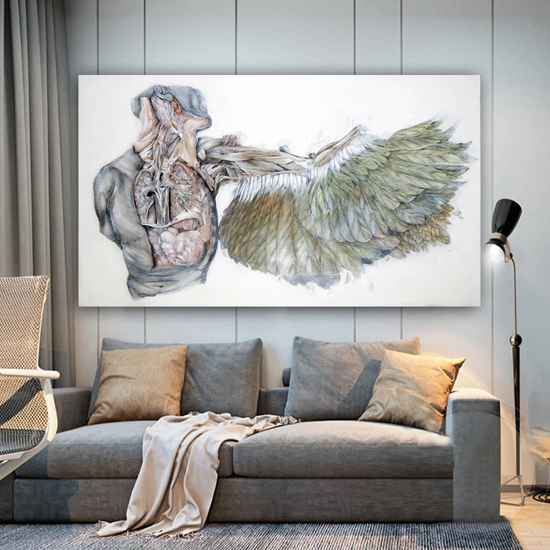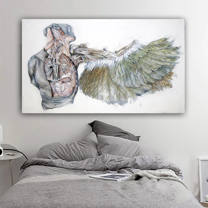 WANGART масляная живопись крыла, смелость потеряться между льдом и снегом, анатомическая масляная живопись, настенное искусство для гостиной, плакат