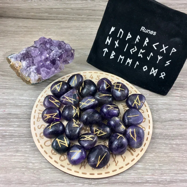 Натуральные кристаллы, аметист, кварц, руны для гадания, энергетиче...