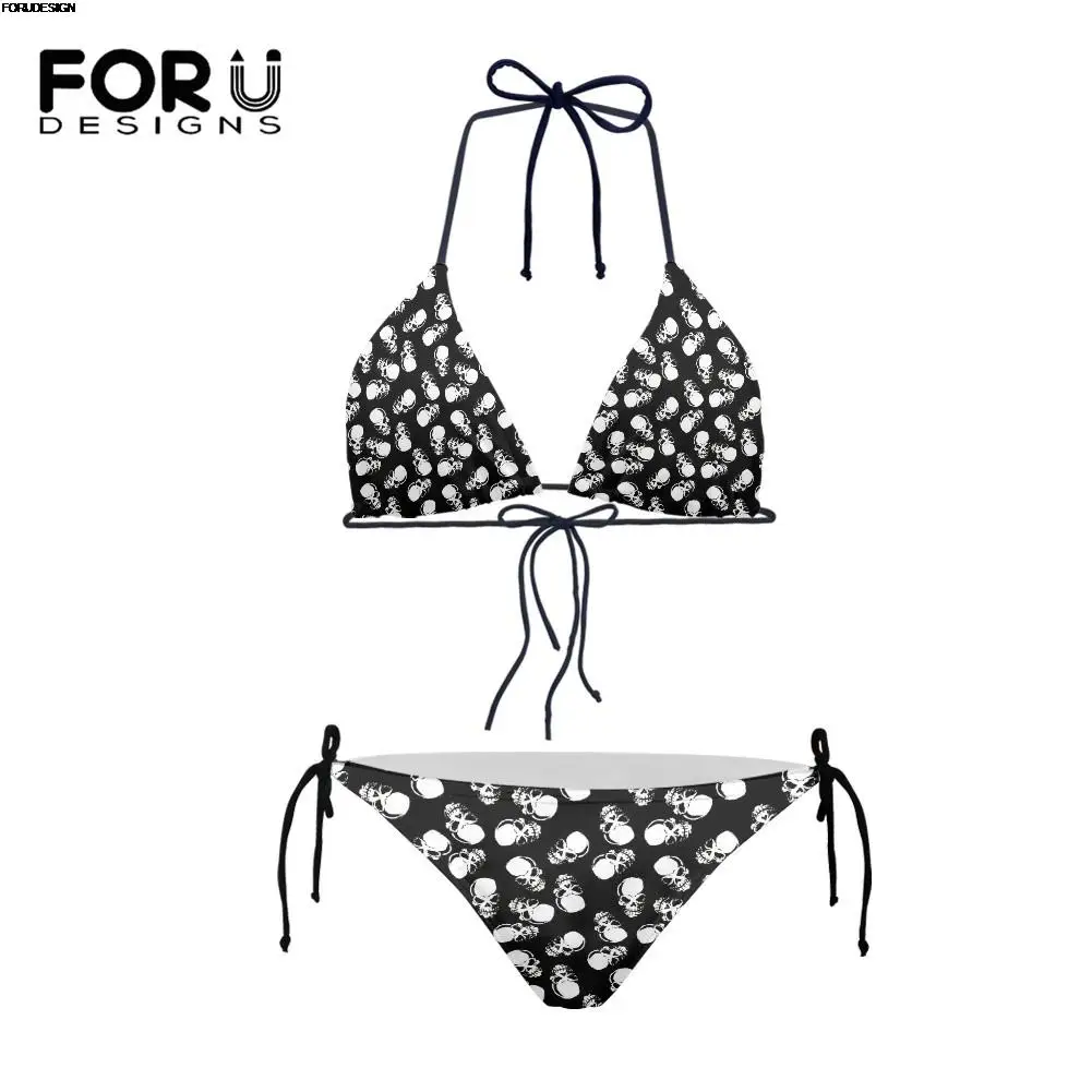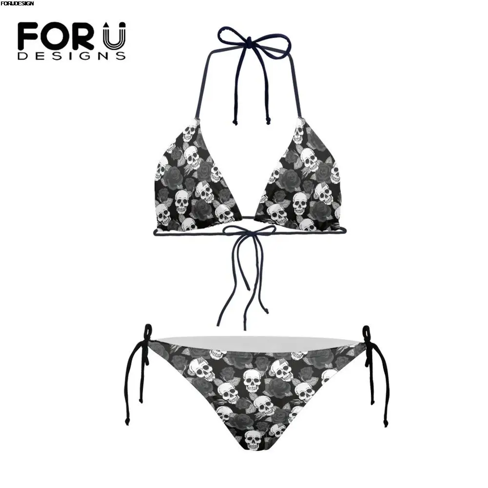 FORUDESIGNS 2021 брендовый черный готический череп Женский сексуальный комплект бикини купальник с низкой талией пуш-ап бразильский купальник новые Купальники