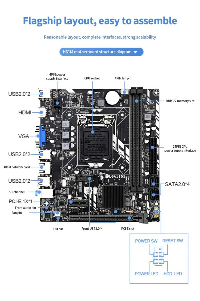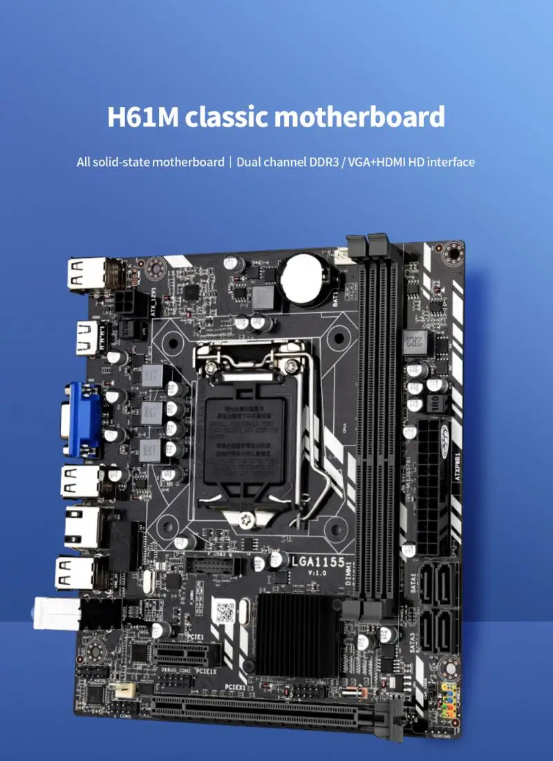 Материнская плата LGA 1155 для Intel Core i7 / i5 / i3 / Pentium / Celeron LGA1155 DDR3 M-ATX Материнские платы Intel H61M 100% Полная проверка