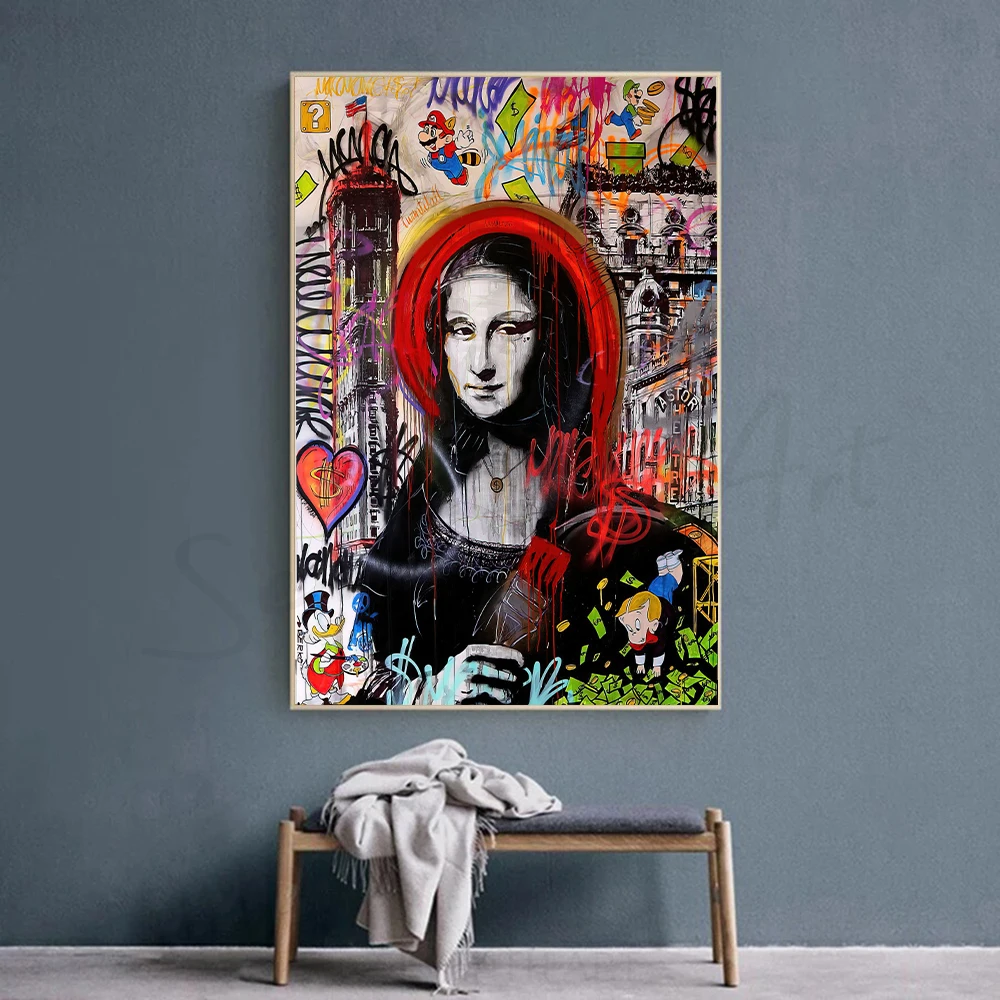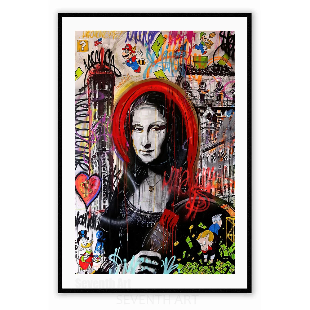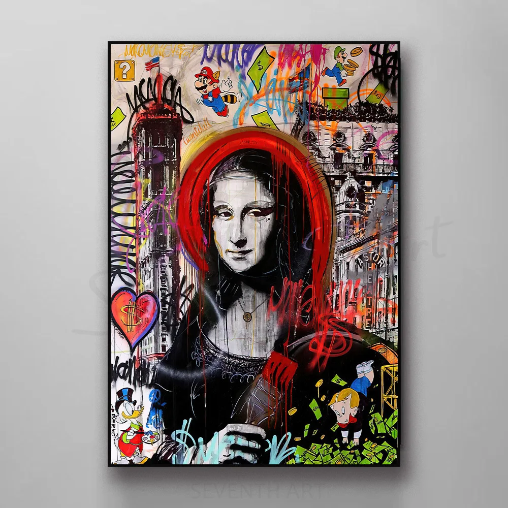 Граффити, Мона Лиза, монополия, уличное искусство, холст, абстрактн...