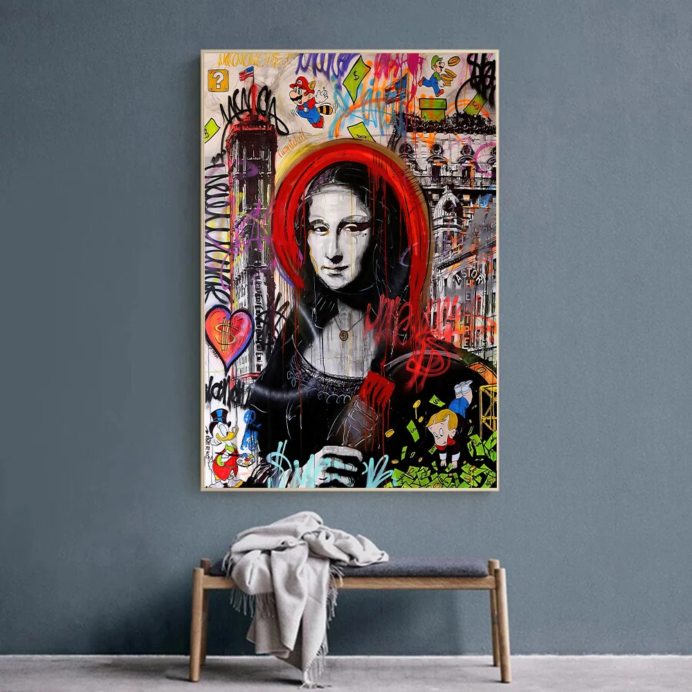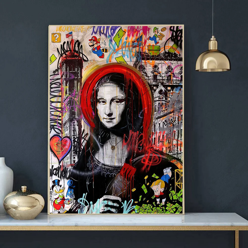 Абстрактные картины на холсте с граффити Мона Лиза современный наст...