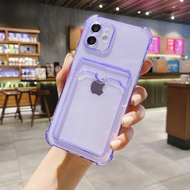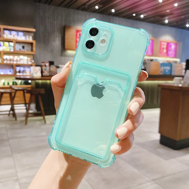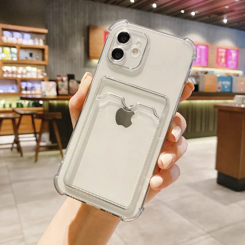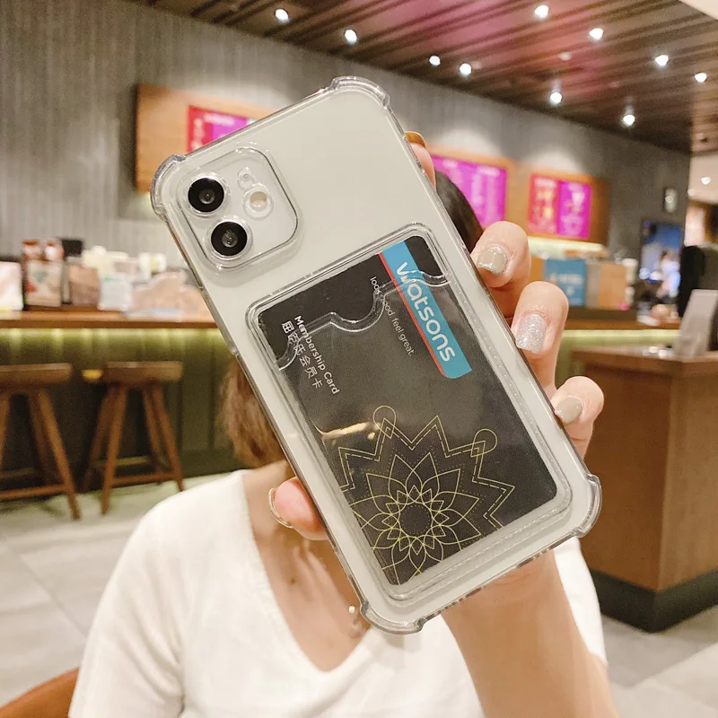 Чехол для телефона с отделением для карт для iPhone 13 11 12 Pro Max Xr Xs Max X 7 8 Plus SE 2020, мягкий ударопрочный бампер, прозрачная задняя крышка