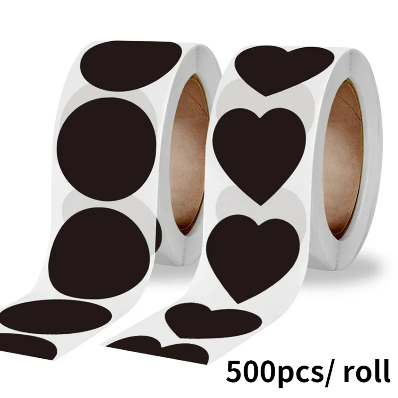 500 шт. в рулоне, черные круглыев форме сердца Наклейки с этикетками, наклейки для детской кухни, этикетки для банок, записываемые бумажные водонепроницаемые наклейки