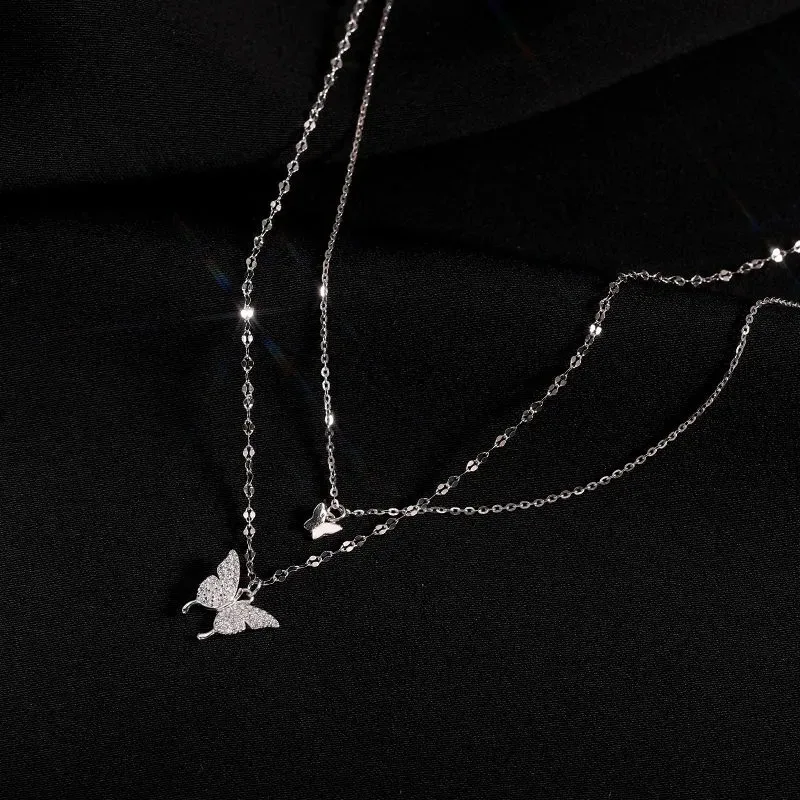 Двойное женское ожерелье-бабочка покрытые серебром, изысканные, женская модная многослойная цепочка до ключиц, женское ювелирное изделие в подарок