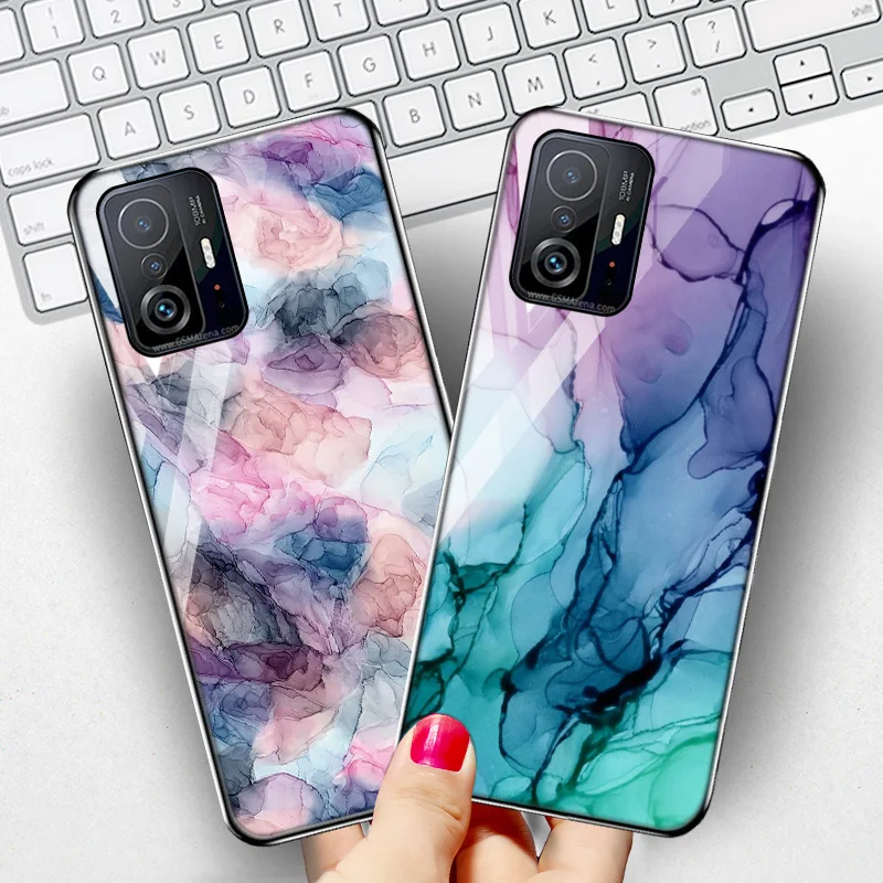 Чехол из закаленного стекла для Xiaomi 12, 11T, чехол с мраморным к...