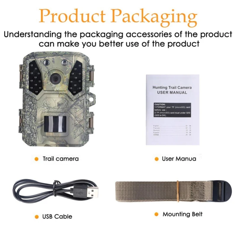 * 1. Разрешение 20MP и разрешение видео FULL HD 1080P обеспечивают кристально четкие и реалистичные изображения и видео, которые позволят вам погрузиться в мир дикой природы, помогая вам лучше понять их повседневную деятельность и привычки в жизни.