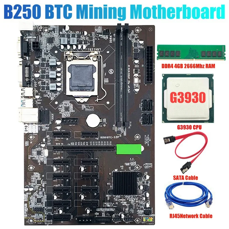 Материнская плата для майнинга B250 BTC с процессором G3930 и кабел...