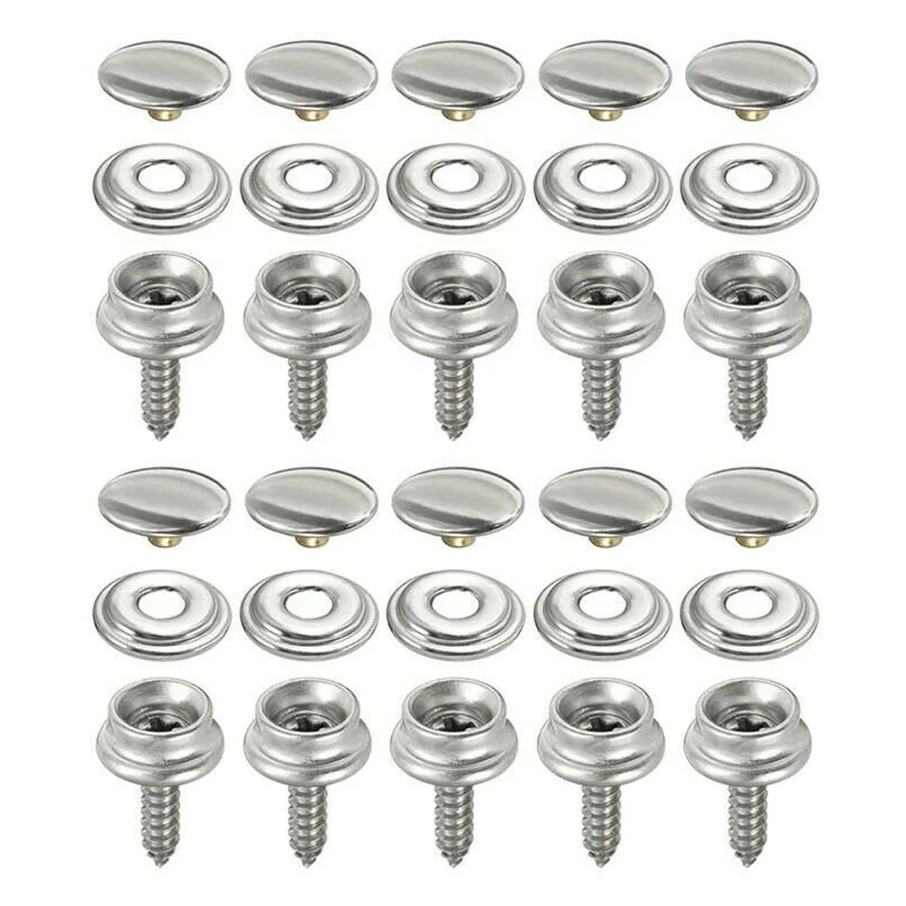 30 шт. 15 мм защелкивающиеся заклепки из нержавеющей стали для фургонов, быстрое крепление для палатки в комплекте, защелкивающиеся застежки для розеток, кнопки, защелкивающиеся застежки