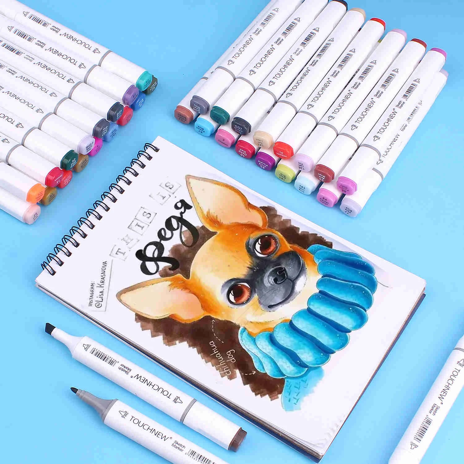 Маркеры TOUCHNEW 80 цветов для рисования, двусторонние фломастеры н...