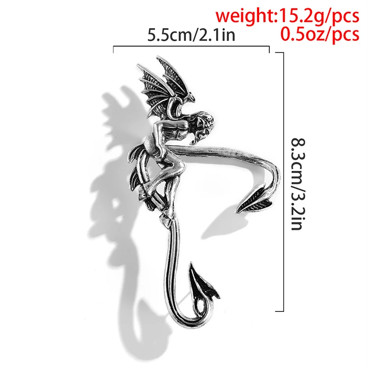 Сказочные серьги-манжеты для ушей, серьги-клипсы для ушей, серьги без пирсинга для женщин серебряного цвета, серьги-каффы с ангелом в готическом стиле, для вечерние ринки, Хэллоуина