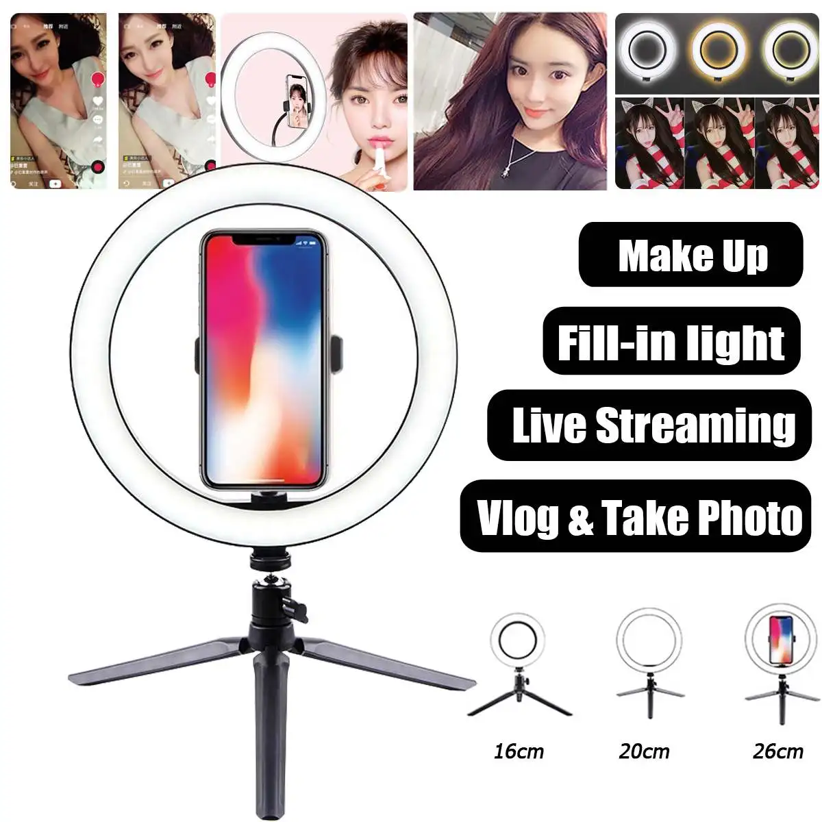 Кольцевой светильник для селфи 10 дюймов, светодиодный кольцевой светильник с держателем для мобильного телефона, лампа для стриминга видео в реальном времени