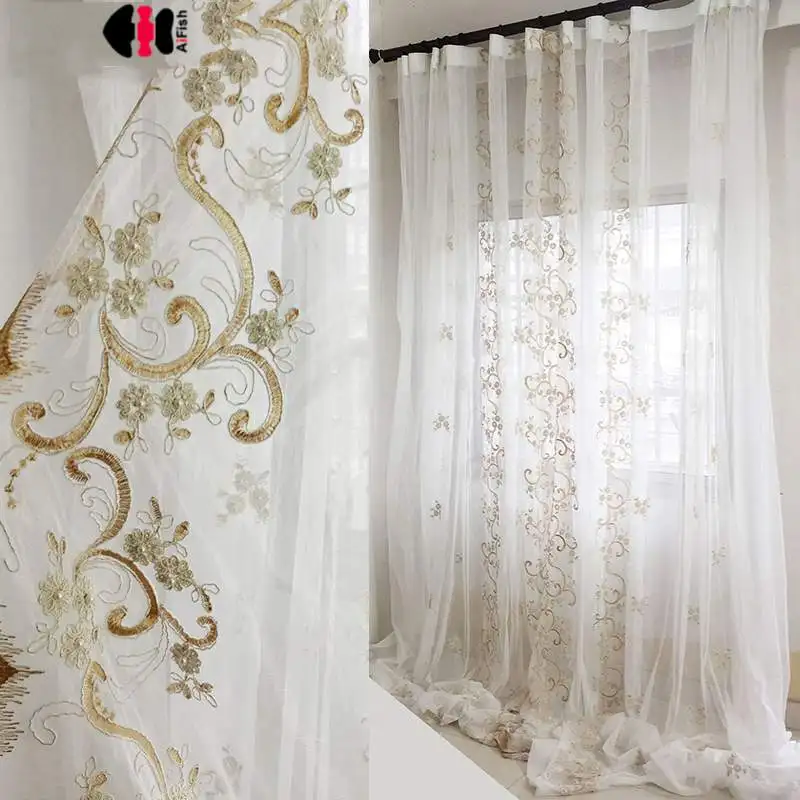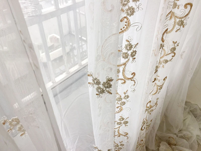 Прозрачные Занавески с вышивкой для гостиной, шторы из вуали в евро...