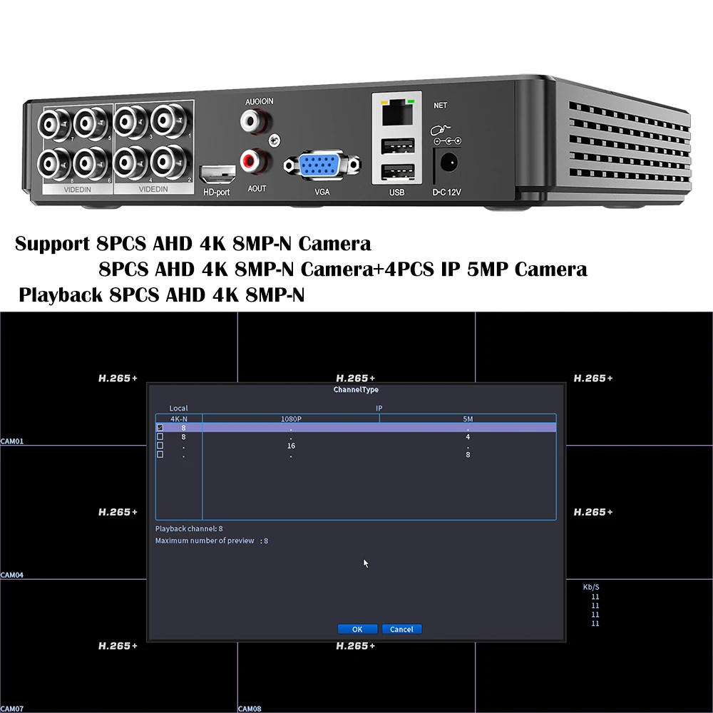 8CH 4K-N 2K 5MP AHD DVR AI H.265 Гибридный 8-мегапиксельный цифровой видеорегистратор NVR для камер 2MP 4MP 5MP 8MP AHDTVICVIXVIIP